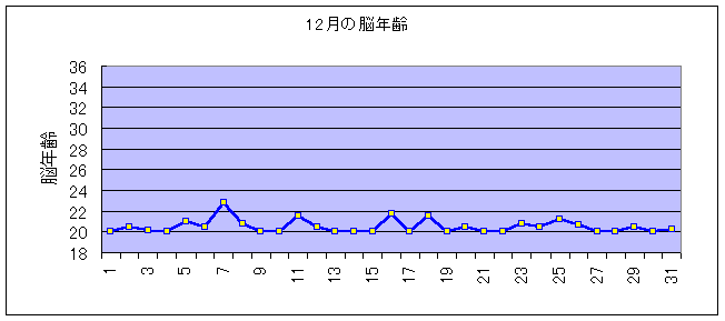 本日の脳年齢:20才4ヶ月(前日比:+-0才0ヶ月)