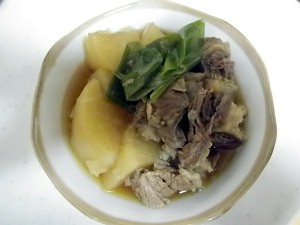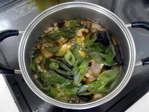 そして、最後に長ネギをのせて、もう一度煮込んだら、めでたく出来上がり!!
