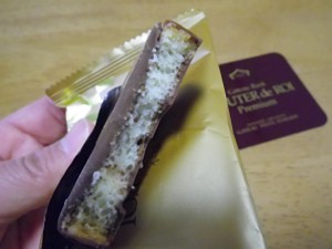 で、ようやく口に・・・コーティングの厚さから結構こってりしているかと思ったが、それほどでもない。チョコがそんなに甘くはないのだ。