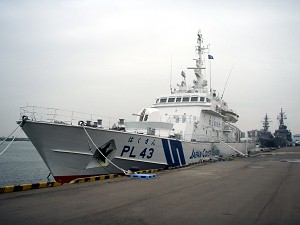 無量寺ふ頭には、海上保安庁の巡視船「はくさん(PL43)」が停泊していて、こちらも1,000トン級(あそ型)の大型巡視船