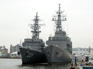 で、港内に入ってみたら・・・海上自衛隊の護衛艦「みねゆき(124)」と「あぶくま(229)」だった。そういえば、地元紙に「港フェスタ」のためにやってくるという記事がのっていた(記憶が)・・・一般公開もされるそうな。