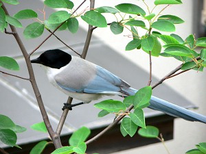 さて、昨日、あらかた収穫を済ませたジューンベリー・・・てっぺんの方はわざと取り残したのだが、今日も朝から、オナガ、ヒヨドリに、新顔のコムクドリが加わって、入れ替わり立