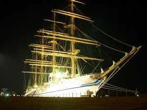 今回は、機走航海訓練中ということで、残念ながら帆は張られていなかったが、やっぱり美しい船である。残念といえば、寄港もまた補給と休養のためということで、公開もされなかったが、間近で見れるだけでも嬉しいものである。