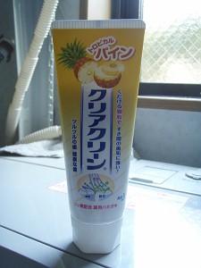今朝、歯磨きをしようと歯みがきを手に取ったら・・・そこには「パイナップルの絵」と「トロピカルパインという文字」が・・・一瞬、子供向けかと目を疑ったが、どこにも「子供向け」とか「クリアクリーンKids」とは書いてなかった。いやいや、いまや、大人が使う歯みがきにもこんなのが出るようになったんですねぇ。