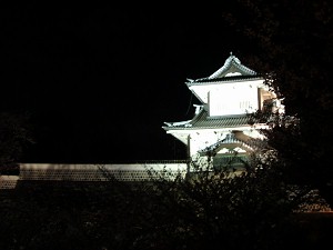 この後、最初に行き損なった「黒百合」に行こうと思ったが、ふと時計を見るとまだ8時半前・・・ということで2軒目の前に、腹ごなしも兼ねて、兼六園(周辺)の夜桜を見に行くことにした。