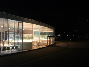 残念ながらライトアップをやっていた園内への入園は出来なかったが、満開の夜桜は十分、堪能することが出来た。で、22時までならフリースペースには入れる21世紀美術館へも足を延ばす・・・実は初めてであった・・・おそまつ・・・。