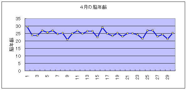 本日の脳年齢:26才5ヶ月(前日比:-0才1ヶ月)