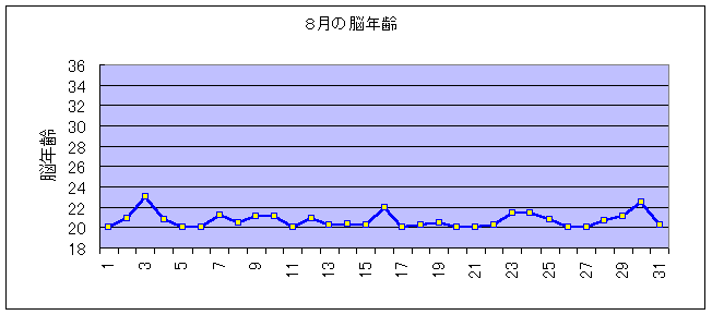 本日の脳年齢:22才8ヶ月(前日比:+1才4ヶ月)