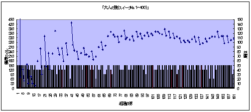 今日まで稼いだ距離?は22,080マイルで、平均137.1マイル・・・一方、ホノルルまでは予想どおりの22,000マイルで、全問正解ならば147日で到着する距離ということで、最終的には14日の遅れとなったのであった。
