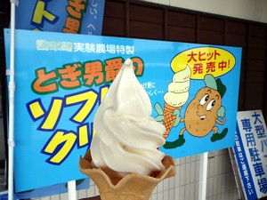9時45分、「とぎ海街道」で「男爵ソフト(250円)」を食べる。