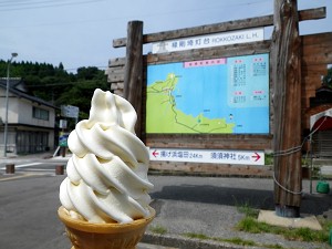 12時40分、能登の北端「狼煙」へ到着、「豆乳ソフト(300円)」を食べる。