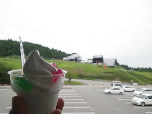 14時15分、そろそろラストスパート、「能登空港」で「ミルクソフト(300円)」を食べる。