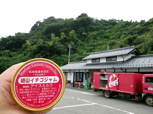 16時22分、閉店時間に余裕で「いおり」に到着、「チェルキオ・イタリアン・ジェラート/崎山いちごジャム(280円)」を購入して、めでたくゴール!!14駅全制覇!!となった。