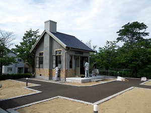 ちなみに館の前庭では書斎「骨清窟」の移築作業中・・・こちらの方がきっと涼しいに違いない・・・。