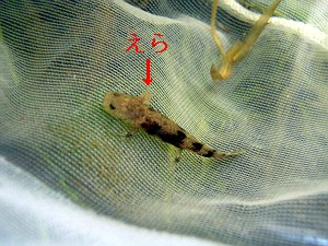 といっても、そのまま放り込んだら、水深は深すぎるし、もしかすると、いつも腹を空かせている「ホンモロコ」に食べられてしまうかもしれない。そんなこと になったら最悪なので、LLサイズのフィッシュネットをケースの上に乗っけて、その中で飼うという方法だ。これなら「ホンモロコ」とは遭遇しないし、水量 が大きいから水温の変化も小さいだろうし、水質の悪化もゆっくりに違いない。水草の上に引っかかった部分のネットにあがることもできる。我ながら名案 だ!!