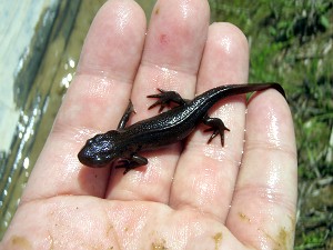 この前の日曜日からおやじのお世話リストにサンショウウオが追加になった。幼体なのでイマイチはっきりしないが、状況証拠からおそらく流水性の「ヒダサンショウウオ」のようだあくまで推測)。