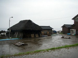五駅目「すず塩田村」・・・曽々木を過ぎた辺りから強い雨が降り出した。塩田もすっかり水浸し・・・梅雨とはいえ、こんな天気が続くと塩づくりも大変だ。そういえば、H9年だったか、天候不順で生産量激減という年がありましたなぁ。