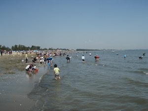 太平洋側に住んでいる方にとっては大した話ではないかもしれないが、日本海側に住んでいる者にとっては、一種、憧れのイベントである。干満差の小さい、こちらにあるのは、腰まで海につかっての貝とりであって、潮干狩りはないのである。で、おやじが潮干狩りをしたのは、大阪在住時、網干海岸での一回きり・・・今回はなんと20年ぶりになのである。