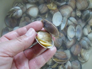そして、ここから自主的に砂を吐かない「どんびとバカガイ」の処理開始である。