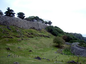今帰仁城の本門「平郎門」(L)、「主郭」(R)