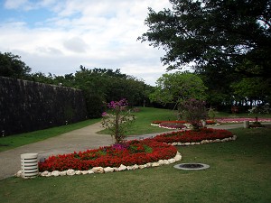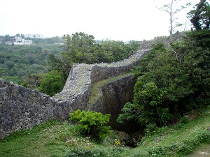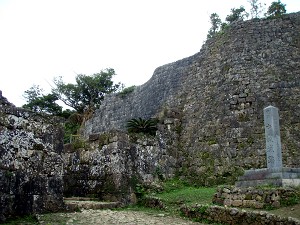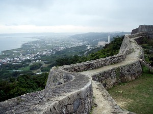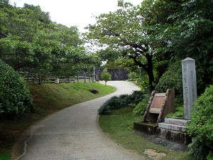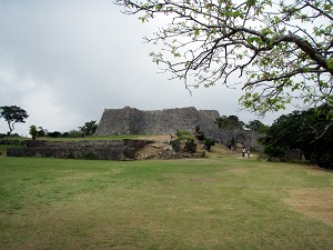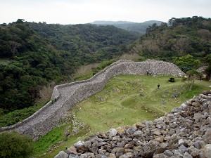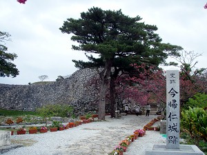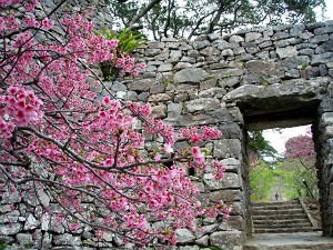 近くで解説していたガイドさんによると、ここが本島で一番、眺望の良い場所だそうで、天気が良ければ首里城址まで見えるそうだが、あいにく今日は雲の中で、残念ながら見ることは出来ず、うっすらとした勝連城址を見ることが出来たくらい・・・それでも指呼の間に見れることが解って、琉球統一のための攻防の雰囲気をなんとなく感じることができた。ちなみに、今帰仁城址では満開だった緋寒桜もここでは既に葉桜になってしまっていたが、かわりに小さな蚊が飛んできて・・・今年初の「蚊に喰われ」を体験することが出来たのであった。