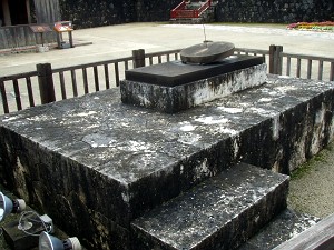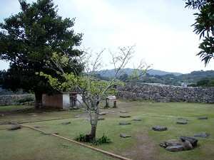 「一の郭」の「正殿跡」(L)、「南の郭」の「遥拝所」(R)