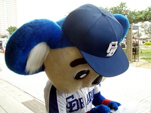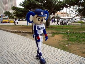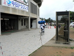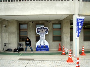きっちり30分でサイン会が終了したところで代わりに先生が自転車に乗って再登場(サイン会の途中、自転車に乗った先生・・・ではなくてそっくりさんこと森野選手が登場したが)、おやじも再びサインをいただきに・・・ドアラ神社のト-トバック(はんこう済み)がまだ残っていたのである。数分後、めでたくサインをいただき、大満足!これで今日の北谷はほぼ満点だ!やっぱり努力は報われる。