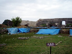 16年ぶりに再会した「正殿」だったが、残念なことにその半分には赤いシートが・・・漆の塗り替え中なのであった。作業は一枚、一枚、板を外しては下地から塗り直す作業だそうだが、案内の方によると某サミットの際に一部だけただ塗り直した「奉神門」は見事にその安普請さを露呈しているのだそうだ。まるで何かを暗示しているようだが・・・深くは語るまい。