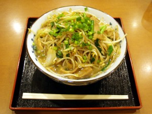 うわさの「肉そば(大)700円」は野菜炒めにつけられた甘めの味が、時間がたつにつれてすばの汁と混じって、これがなかなか美味しい。が、やっぱりこのボリュームはやっぱりおやじにはきつく・・・食べながら8番ラーメンの野菜ラーメン(大)を思い出さずにいられないのであった。