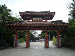 史跡石柱と「木曳門」(R)、世界遺産「園比屋武御獄石門」(L)