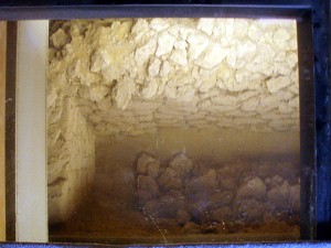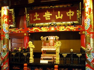 正殿地下の遺構(R)、「御差床」の国王の椅子(L)