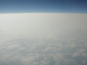 金色塗装のANA機(R)、天国終了、雲の下には・・・(ToT)(L)
