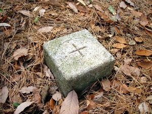 牛塚山頂647.2m、展望なし(L)、山頂の三等三角点(R)