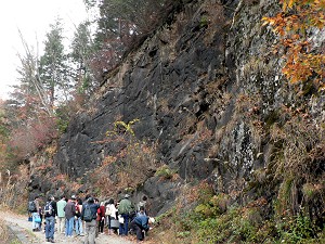 一昨年、昨年と参加させてもらって、もはや(勝手に)恒例になったFPDMの「秋の野外観察会」・・・今年の観察場所は「岐阜県高山市(旧荘川村)付近の手取層群」である。