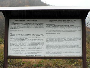 県指定天然記念物「牛丸ジュラ紀化石」(L)、解説版(R)
