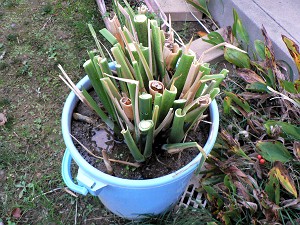 ただ、いまいちよく判らないのが、来年用の株の確保方法・・・今年の株は収穫後の株をバケツから抜いてほったらかしておいたものを分割して使ったのだが・・・あれでいいのかどうか?あちこちググってもみつからないから、同じ事を繰り返すしかないですな?寒さだけが心配だけど・・・。