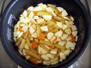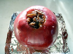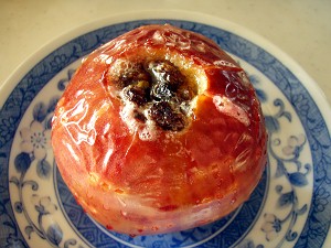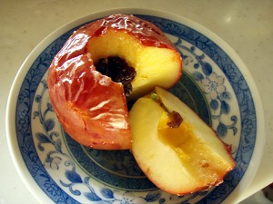 で、できあがりがこちらの写真・・・まだ、皮に綺麗な赤色が残っているので、もしやと思ったら、中味がまだちょっと硬かった (´・ω・`)