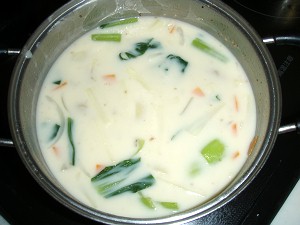今や貴重な珍味となった鯨(クジラ)。コラーゲンたっぷりのクジラ皮を、往年クジラ汁風に仕上げました。さっぱりとしたスープも絶品です!!