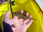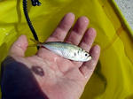 で、30分以上経ってようやくアタリが、というより揚げたらマハゼが引っかかっていた。これを合図に徐々に(豆)アジがかかるようになったが、前々回のように一度に2匹、3匹ではなく、1匹ずつ・・・ま、ぜいたくは言えない。小僧の機嫌も直ったし・・・。