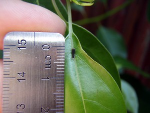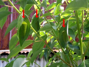 このまま放っておくとまた前の様になってしまうので、切っちゃおうと思っているうちに・・・アオスジアゲハがやってきて、産卵して・・・切るに切れないことになってしまった (´・ω・`)
