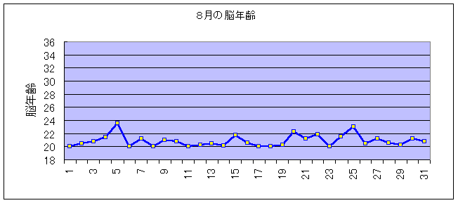本日の脳年齢:20才7ヶ月(前日比:-0才8ヶ月)