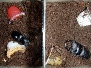 我が家に2匹いるセレベスヒラタクワガタのうち、1号ことセレヲ(羽化後1年3ヶ月(推定))は身体は3号ことセレゾウ(同10ヶ月(推定))よりも小さいが凶暴である。