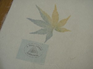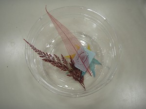 紙すき体験は和紙体験館で(L)、まずは飾りに使う押し葉を選択(R)