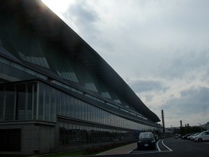 このスポーツセンター・・・日本海側最大級のアリーナと言うことだが、斜め上から見ると、縦長で傾斜がついてて、その一番高いところに円盤がついてて・・・まるでナ○クジ、いやウミウシみたく見える・・・愛称募集があったら「(シー)・スラッグ・ドーム」で応募したいくらいだ。100%採用されないだろうけど・・・。