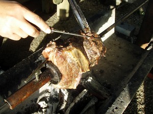 食べたい人は食べたい分だけナイフでそぎ取って食べ(切った後には塩・コショウを振りましょう!)、味はクレージーソルトだけというシンプルなものだが、適度に脂も落ちてとっても美味い。能登豚の美味さを思いっきり楽しむことができたが・・・こりゃクセになります・・今年は秋・冬にも登場の予感?が・・・。