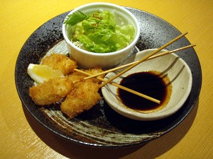 すっかり往時の賑わいがなくなった香林坊・片町界隈とはいえ、さすがに金曜日・・・久しぶりに行こうと思った「酒菜家」さんはいっぱい (ToT)(ToT)(ToT)「おいでまっし旬の膳」で、金時草(写真右)、能登豚(同左)など、食べつつ、楽しい打ち合わせ(笑)
