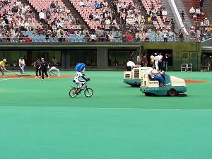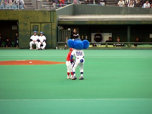 今年の対戦相手は「上戸カイくんず」 こと「福岡ソフトバンクホークス」・・・先生は福岡に遠征しなかったので、残念ながらハリーホークは来ない。といっても、見たいわけではないが・・・
