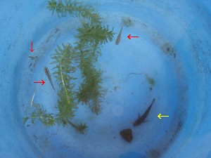 そして最後に一番大きな鉢・・・な、なんとメダカは1匹も見つからず、かわりにウキゴリが1匹!