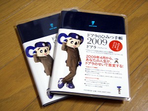 最初のページこには「ドアラのひみつ手帳2009」の使い方が書いてある。右のページには「ドアラ機能の使い方」が・・・「今週の気になるひと言」を書いておくと後でネタに使えるという優れ?ものだ。もちろん、日々反省のおやじには「今月のはんせい点」の記入は必須である。