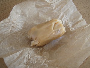 「ひまわりの種」が使われているといっても、目に見えないほど細かくなって生キャラメルの中にとけ込んでいるわけではなくて、炒った種が数粒、生キャラメルの中に混ざっているという使われ方・・・だから、使っているという表現はちょっと大げさな気もするが、味自体は香ばしくてなかなか美味しい。
